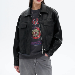 • 8 seconds Faux Leather Shirt Style Blouson — Black