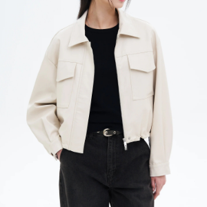 8 seconds Faux Leather Shirt Style Blouson — Ivory