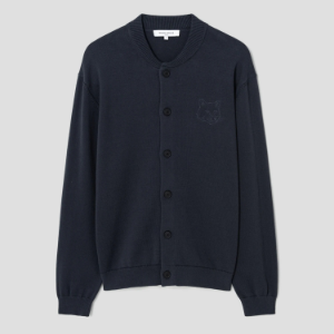 • Maison Kitsune Men Bold Fox Head Embroidered Knitted Blouson - Slate Grey
