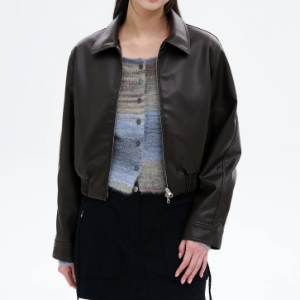 • 8 seconds Slim Fit Blouson Leather Outer — Brown