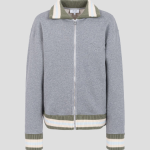 Maison Kitsune Men Varsity Zipped Blouson In Fleece With Knitted Detail - Medium Grey Melange