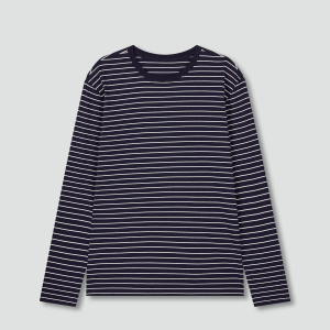 • JAJU Smart Cotton Round Neck Long Sleeve Lounge T-Shirt – Dark Navy