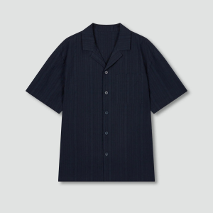 • JAJU Rayon Cotton Seersucker Short Sleeve Pajama Shirt – Navy