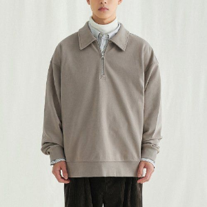 Melange Master Oversized Collar Half-Zip Sweatshirt – Greyish Beige