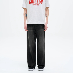8 seconds Full-Banding Wide-Fit Denim Pants — Black