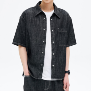 8 seconds Short-Sleeve Lightweight Denim Shirt — Black