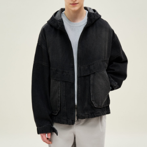 8 seconds Washed Cotton Stand Collar Short Jumper — Black