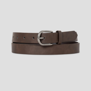 8 seconds 25mm Silver Glossy Round Buckle Belt — Brown